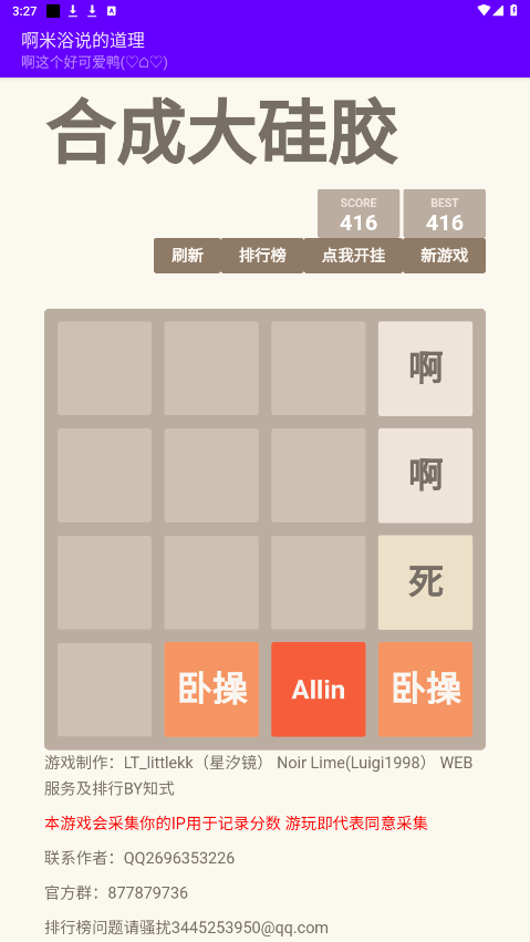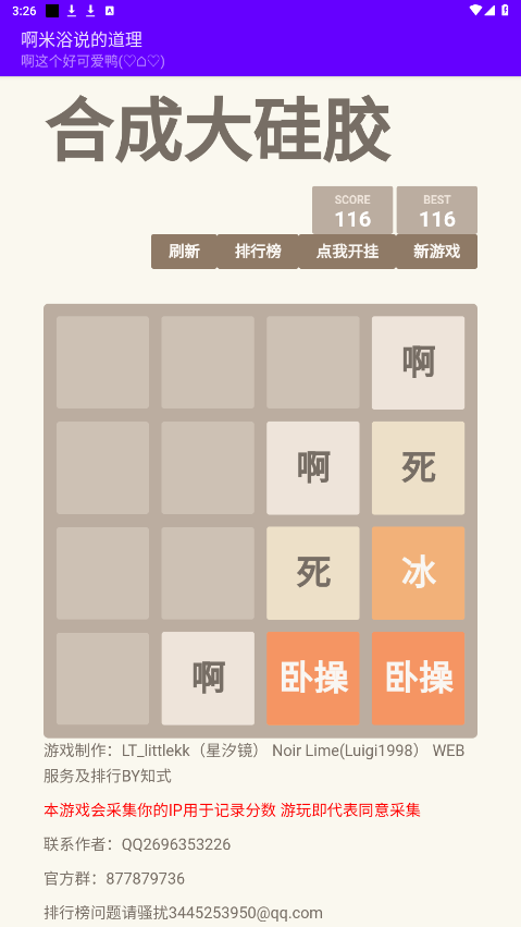 《合成大硅胶》是一款创意十足的休闲益智小游戏,它将传统2048的玩法与汉字文化巧妙结合。游戏中,玩家需滑动屏幕,让相同的汉字相互碰撞合成,目标是创造出更多的汉字块。不同于常见的数字合成,这款游戏以汉字为媒介,让玩家在享受合成乐趣的同时,也能感受到中华文化的博大精深。