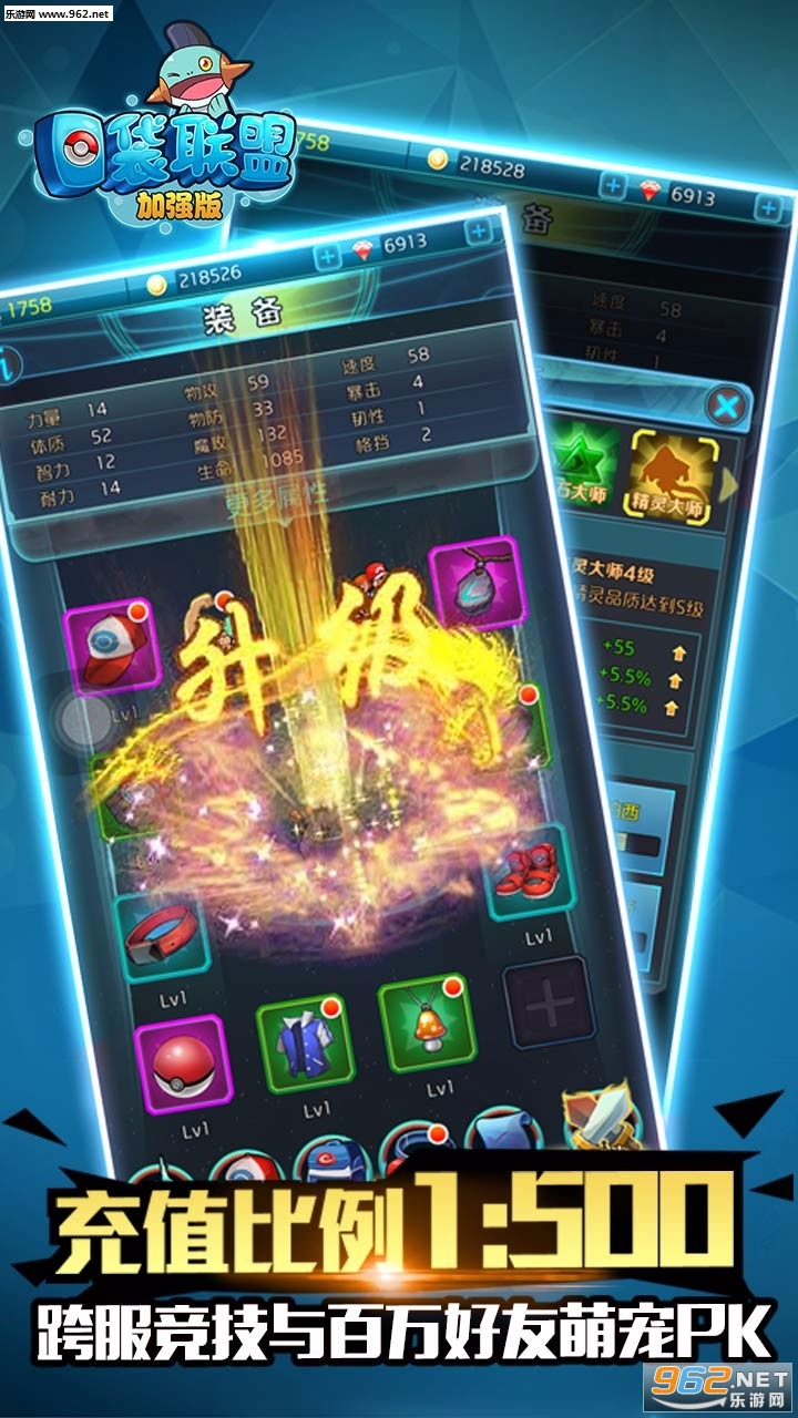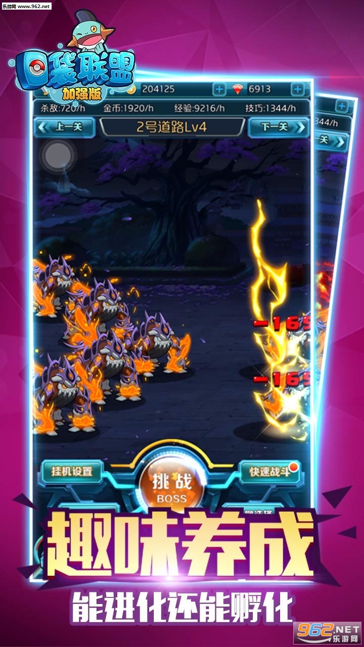 《口袋联盟-加强版》结合RPG元素与宠物卡牌为一体,给玩家带来全新的超凡养成体验,从传统挂机游戏强调“战斗力”的一维玩法,衍变为强调“多样性”与“搭配性”的二维玩法。