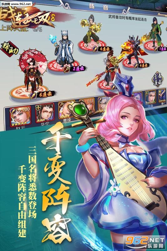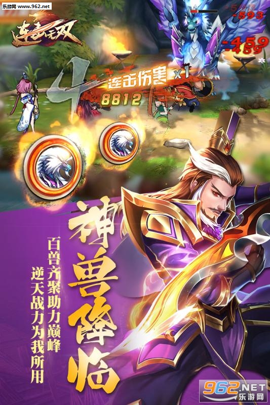 除了传统三国英雄外,《连击无双》还在游戏内加入了各种知名神兽,来辅助玩家争霸天下。而这些神兽不仅背景故事不同,其职业身份、战斗技能亦各不相一,极大的满足了玩家在连招阵营中的选择与搭配。