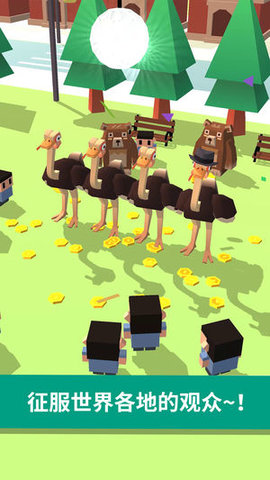《扭腰鸵鸟游戏安卓版》是一款趣味性休闲游戏,画风制作精致背景音乐欢快,玩家在游戏中需要让鸵鸟们开始跳舞,不仅仅是一只而是几只,动物要一致,除此之外你还要探索其他动物的舞蹈,吸引观众们的注意力,努力的赚钱金币!