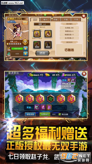 游戏中玩家可以收集三国名将的卡片,然后自己培养,他们的武力值由你决定。