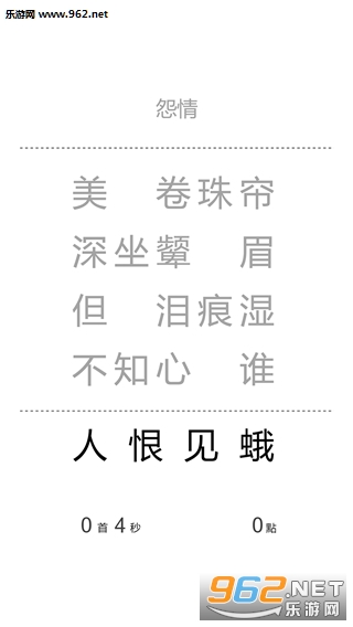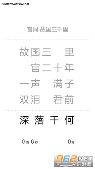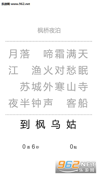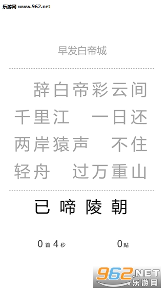 游戏开始会随机抽取一首唐诗,并将每行抽去一个字。