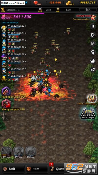 2、你将通过战斗获得金币,宝珠,经验值和物品,并使用这些奖励提升单位;