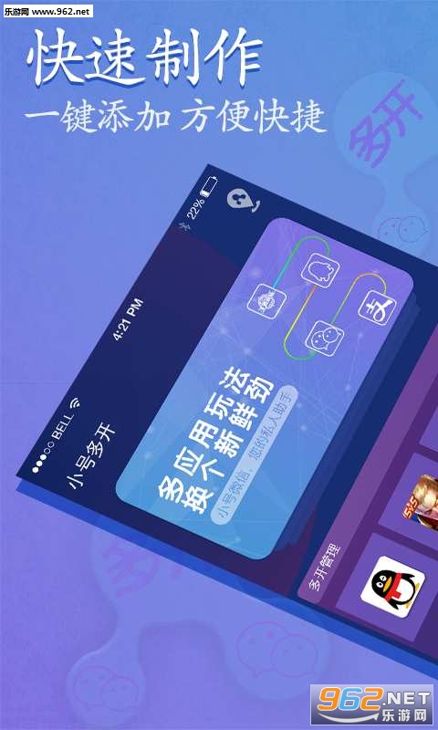 《手机小号多开软件》是一款为朋友们打造的手机软件多开工具,有时候我们需要在手机上同时登陆多个账号,一般手机是不支持的,可以使用小编带来的软件一键多开,、游戏、工作软件等都可以一键多开,简单方便。