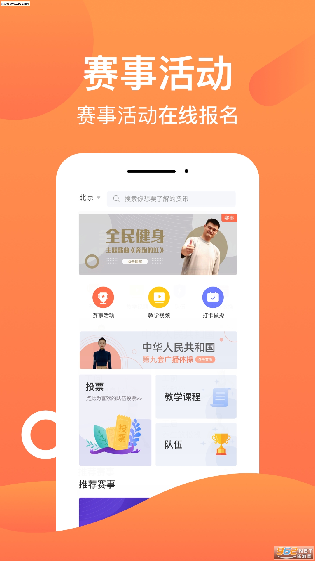 操场APP是一款面向体育运动爱好者推出的进行官方/大众赛事和全民健身的官方报名的服务平台。推广全国广播体操、工间操、工间健身及其其他赛事活动。从线上视频分解教学,日常督促打卡做操,赛事信息组织发布,到比赛结果评比打分的一体化完整流程,约你来加入!
