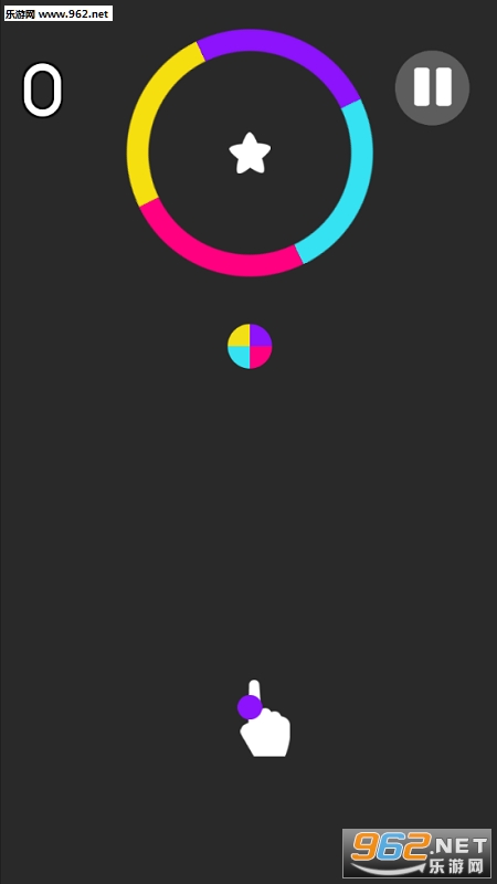 圆环会在小球上方旋转,当转至小球正上方的颜色区域与小球颜色一致时,小球便可以通过障碍物。