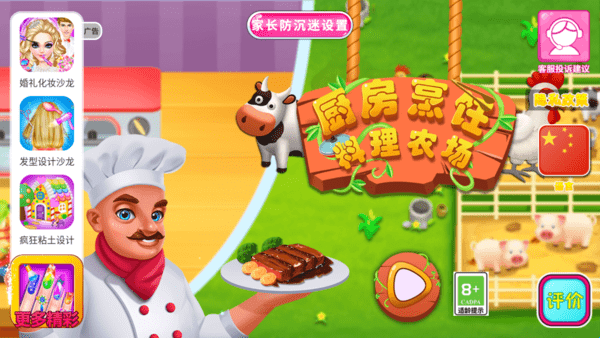 1、田园风格的模拟经营类游戏,玩家可以控制厨师,开心的做菜。