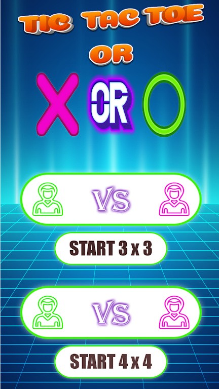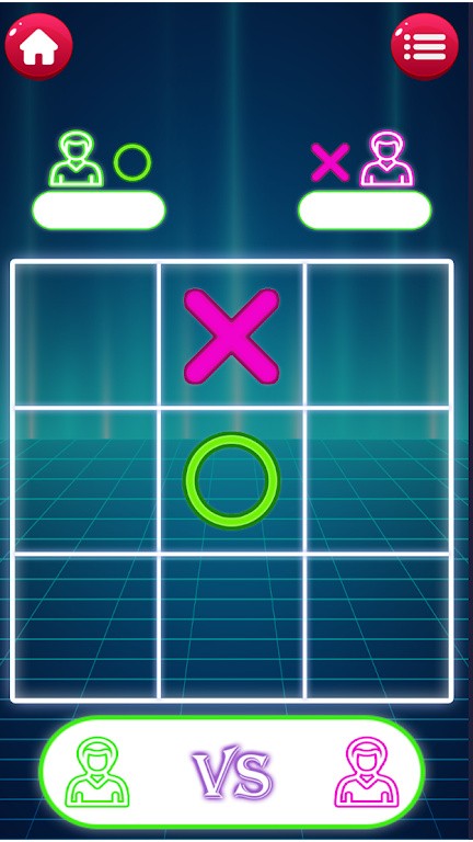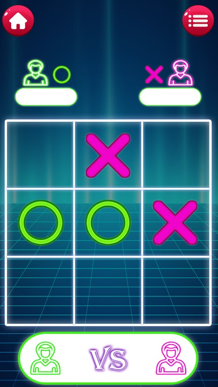 随时随地就可以和朋友进行对战。游戏规则简单,在3*3的格子中将X或者O三个连成直线就行,是一款非常有趣的和简单的井字棋游戏。玩家可以通过积分来兑换不同的场景皮肤,例如霓虹灯牌、简约卡通、炫酷光效等。