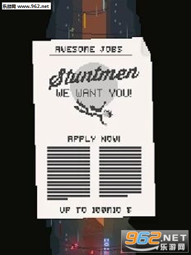 这是一款以主人公申请电影《陷入东京》的特技演员面试为主题的挑战游戏,游戏中玩家将扮演一个怀有电影梦的男子,为了成为电影的特技演员而使出浑身解数表演特技——跳楼。这个楼不仅要跳得安全、还要跳得好看,才能赢得制片人的喜好,最后成功出演。