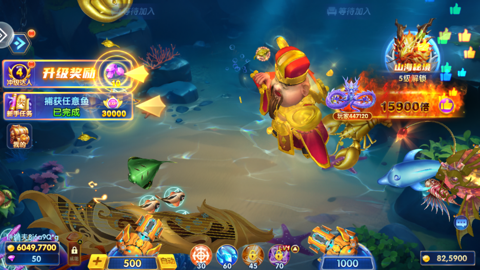 1、万人捕鱼、实时联网、趣味捕鱼、酷炫体验;
