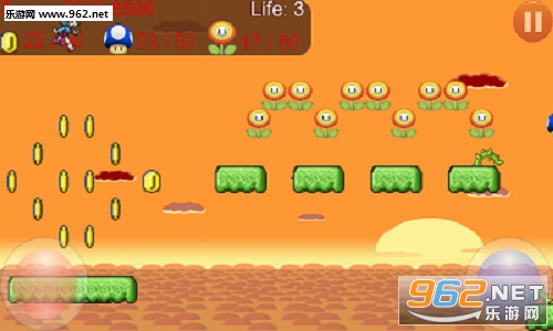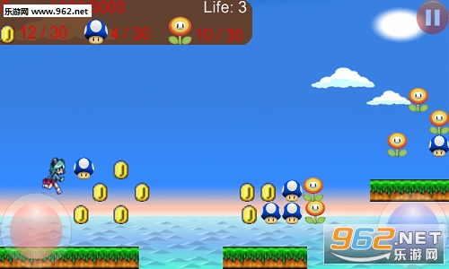 游戏中萝莉一直前跑收集每关所需物品,通过右下蓝色按钮跳跃,左下红色按钮发射子弹, 到4小关的时候打败抓走公主的BOSS龙,从而解救公主。