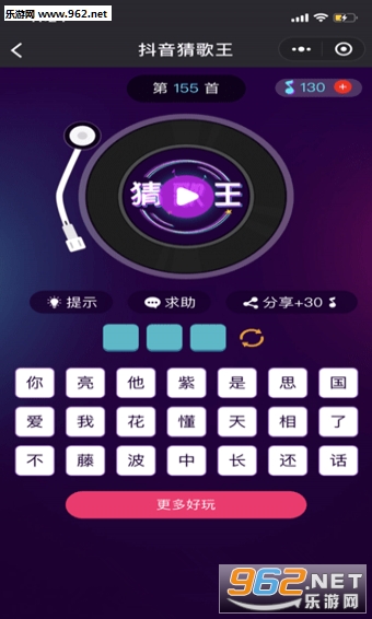 《抖音猜歌王》是一款火爆朋友圈猜歌小游戏。听音乐,猜歌名,我是猜歌王,等你来挑战!总有你不知道的歌曲!不信你来试试!