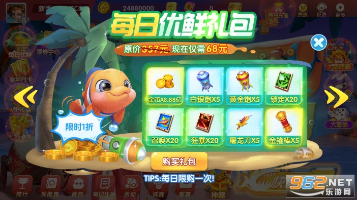 1、技巧一:花小钱打大鱼,玩家们开局的时候可以使用低价格炮弹,去打那种成群的小鱼,虽然小鱼的价格并不是很高,但是用小炮弹能打到就是非常赚的,因为打成群的小鱼会有概率获得其中的很多小鱼,累积起来也是非常划算的,如果运气的好的,小炮弹用极小的概率打掉非常大的鲨鱼,利润直接翻倍。