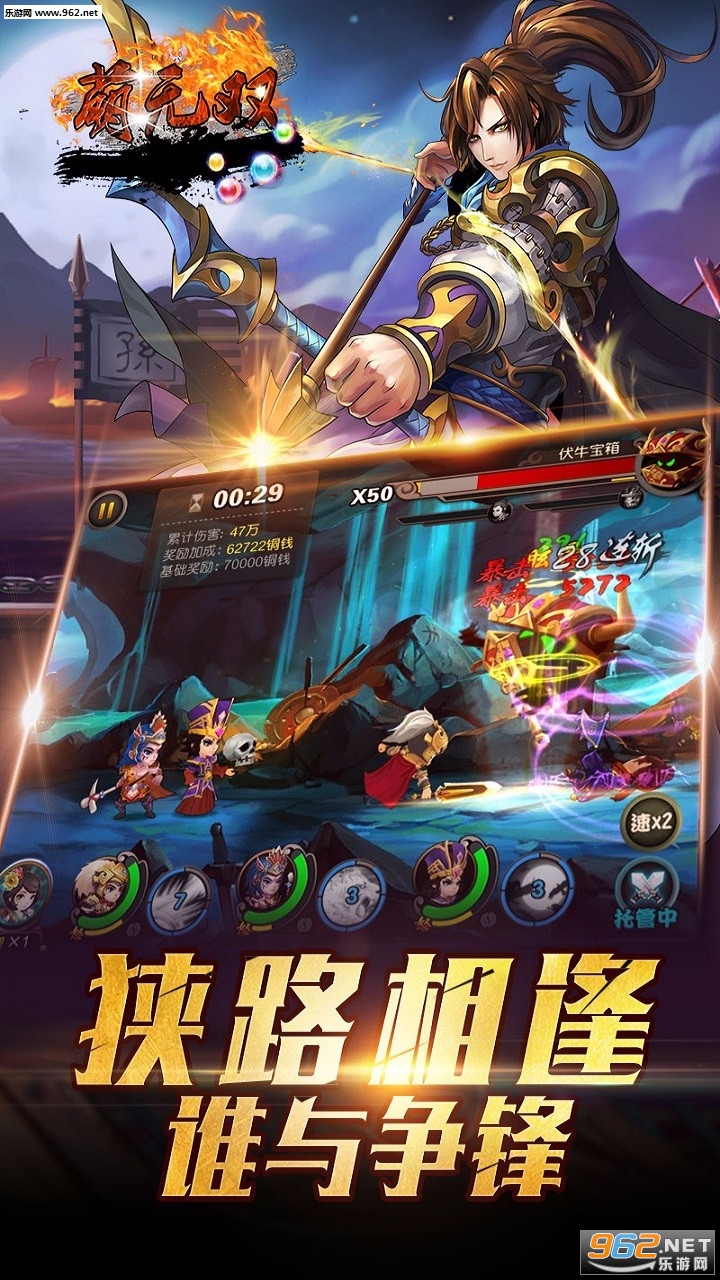 游戏采用精美的卡通渲染,超流畅的骨骼动画,塑造出鲜活三国武将。每一个武将都具有独特的性格,酷炫的装束和两眼的出场方式,保证您爱不释手~