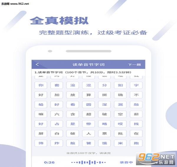 2. 短文朗读:提供普通话测试大纲短文朗读范本,您可以反复听取并进行朗读评测,培养良好朗读状态,准确把握作品情感。
