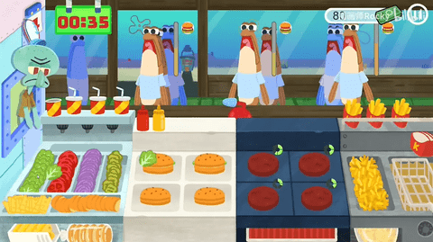 1、在这个充满创意的蟹堡王餐厅里,用心制作美味的蟹黄堡;