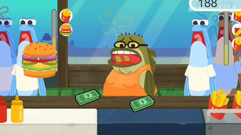 【痞老板】会偷蟹黄堡,如果被他偷走就游戏结束
