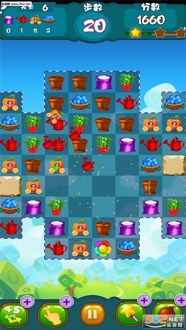 农场消消乐是一款有趣的益智休闲类游戏,游戏中,玩家要把相同图形的小方块通过移动的方式放在一起,只要连起来的小方块在一横或者一竖上是超过三个的,那么他就可以被消除。