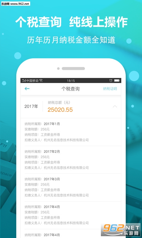 【个税查询】:个人所得税缴纳记录一目了然,个人办税更加省时省力;