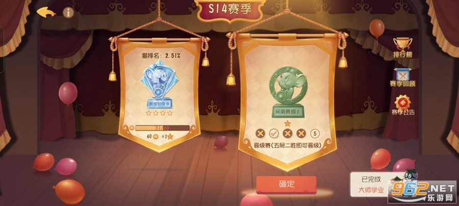 游戏中的猫、鼠的段位共分为6个段位,每个段位分为1-5级,到达一级以后可通过晋级赛晋级。如果有人达到无敌猫皇、无敌鼠皇的最高段位后,将以胜点累计进行排名。
