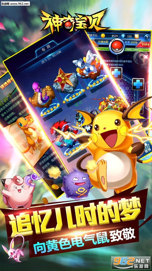 超经典小精灵回归,原汁原味重现原著技能,还有特色原创技能、传说精灵专属酷炫技能,根据属性克制BOSS,多种战术策略搭配,让我们一起打倒“火箭队”,展开宿命の对决!