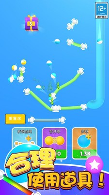 《弹球高高手》是一个款有趣解压的休闲益智游戏,玩家在游戏中会获得一跟无限循环发射弹球的管道,玩家通过在关卡中使用绳索、风扇、大炮等道具来改变弹球的运动轨迹,弹球每发生一次反弹,可以获得一定数量的货币。通过使用货币可以用于购买更多的道具、增加球的数量、增加球的得分等。当玩家构建出合理的摆放方式时,玩家将很快收集到关卡通过的目标分数获得胜利!