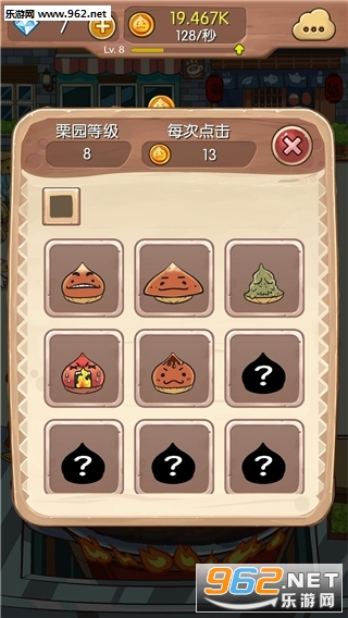 经营你的栗子摊档,通过出售栗子,吸引顾客赚取金币,升级栗园,解锁各款栗子。