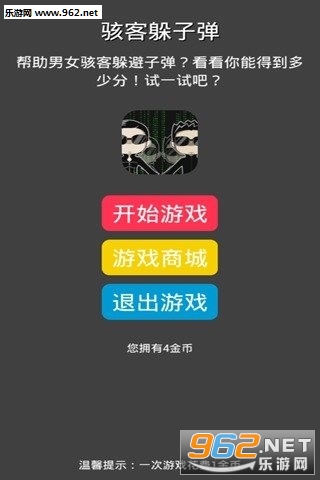 左右点击分别控制男女骇客改变位置,以躲避高速从天而降的子弹,避开一个子弹得1分! 提示:男女骇客任一死亡,游戏结束!