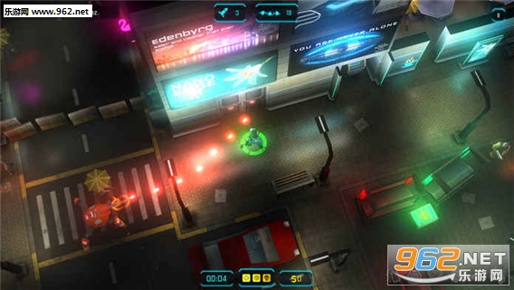 这是一款俯视角射击游戏,玩家将扮演机械强化的超级警察,在城内维护秩序,打击罪恶。