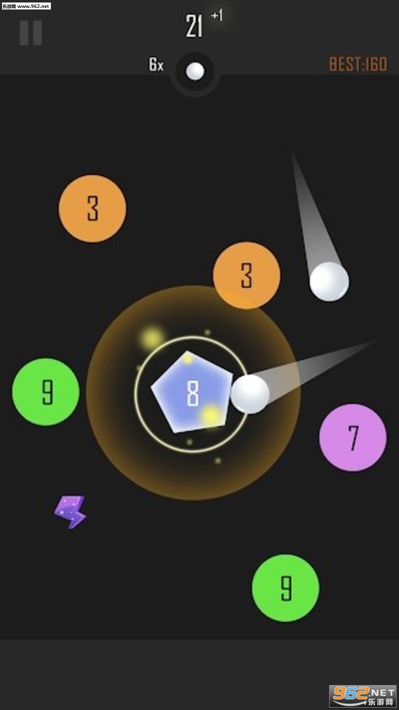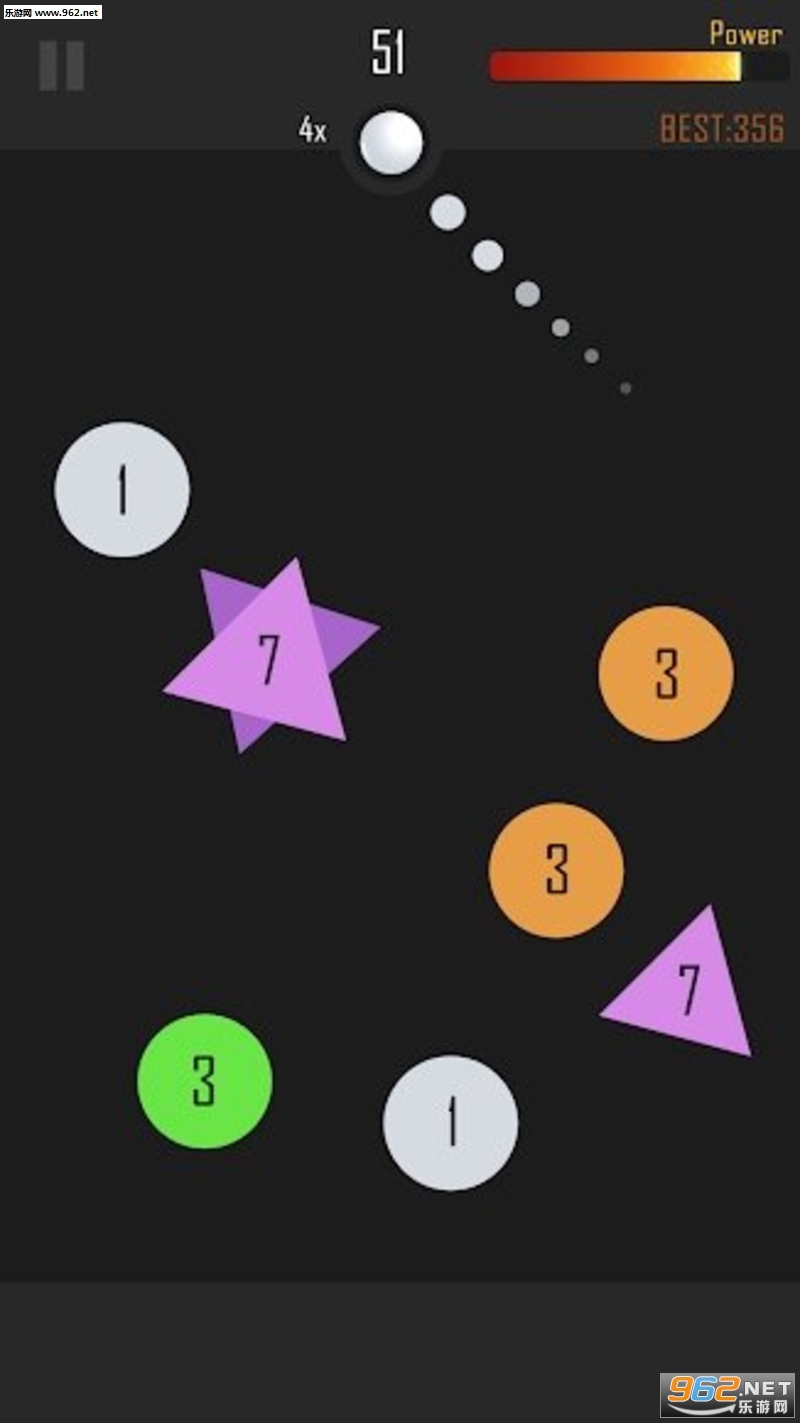 找好需要的角度,发射弹球,球在下落的过程中与其他不同数字球相碰撞,每碰撞一次,球的数字就会减少1,,当球的数字减少的0后,球就会消失在屏幕上了。