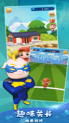1、一款采用3D引擎技术打造的以猪猪侠为主题的Q版跑酷休闲闯关游戏;