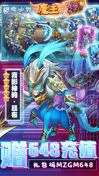 《魔主(GM送抽送充)》是一款以即时PVP为核心的超人气卡牌手游。无脑日常任务模式,快速上手,追寻过关斩将的无尽快感。更有玩家间实时组队PVE&PVP挑战、大量的随机事件、社交好友助战、跨服3V3排位赛、免费赠送GM1特权、648元充值卡宝箱和无限连抽!让你体验土豪的感觉!地下城战斗等丰富互动玩法。可佛、不氪、烧脑、耐玩是我们全力为玩家们带来的游戏体验!策略新境界,三大种族百位英雄任意搭;战斗新体验,开启爽快激斗新感觉!