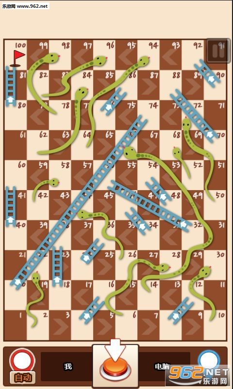 梯子与蛇是一款休闲益智类游戏,通过一个简单的棋盘游戏,谁先到达100步为赢家,遇到梯子可以向上爬,遇到蛇会后退喔。
