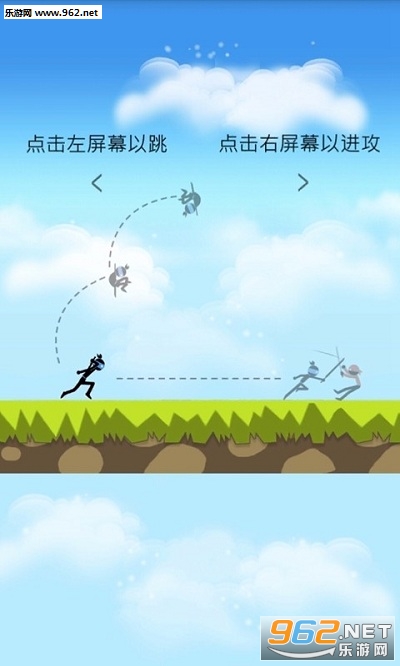 游戏操作非常简单,点击屏幕左侧使忍者跳跃,躲避障碍;点击屏幕右侧发起攻击。