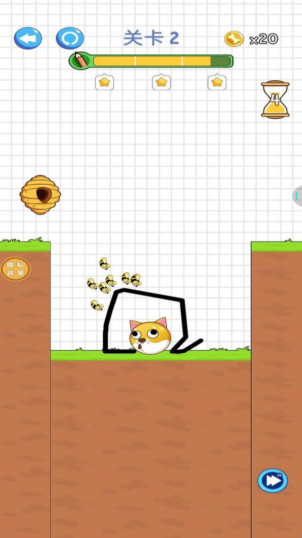 1、每一关狗狗面对的难题都是不同的,你要多尝试画线,帮助狗狗通关;