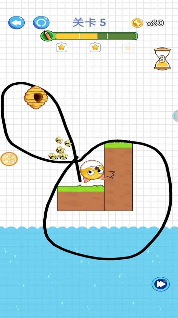 救救小狗狗是一款非常有趣的画线闯关游戏,熟悉的蜜蜂,熟悉的画线救狗的方法,简直让人玩的停不下来,游戏里面玩家需要保护狗狗不被蜜蜂围攻,通过画线的方式来拯救狗狗,还有超多不同的关卡等你体验,每个关卡都能给你带来不一样的游戏乐趣,当然,越到后面难度肯定越高,不过着肯定不会难倒玩家的,相信让你可以在这里玩得过瘾,喜欢的小伙伴快来下载吧。