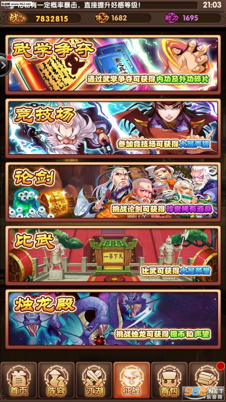 4.[超热情] 比武、论剑、竞技场积分兑换顶级武学、传说侠客,巧妙搭配阵容,非R玩家亦可超神。