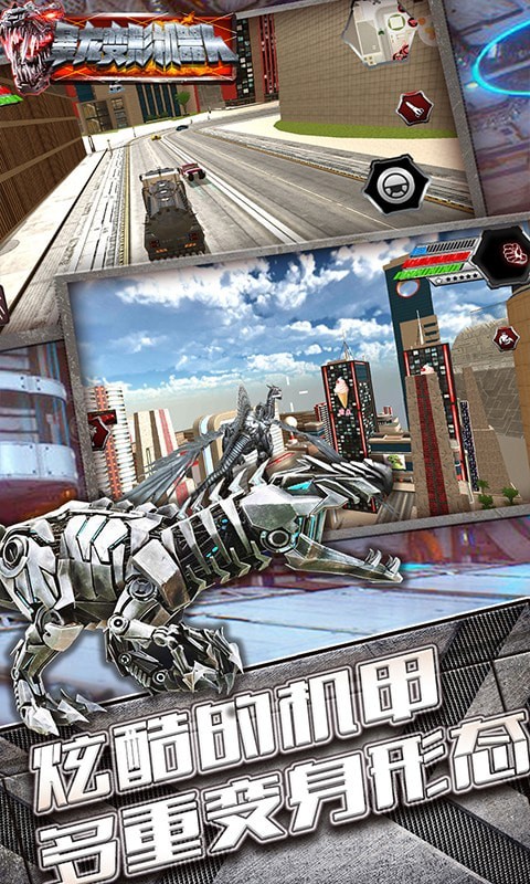 2、最强战甲恐龙游戏中,玩家将控制酷炫的变形机器人打击罪犯,守护城市的和平。