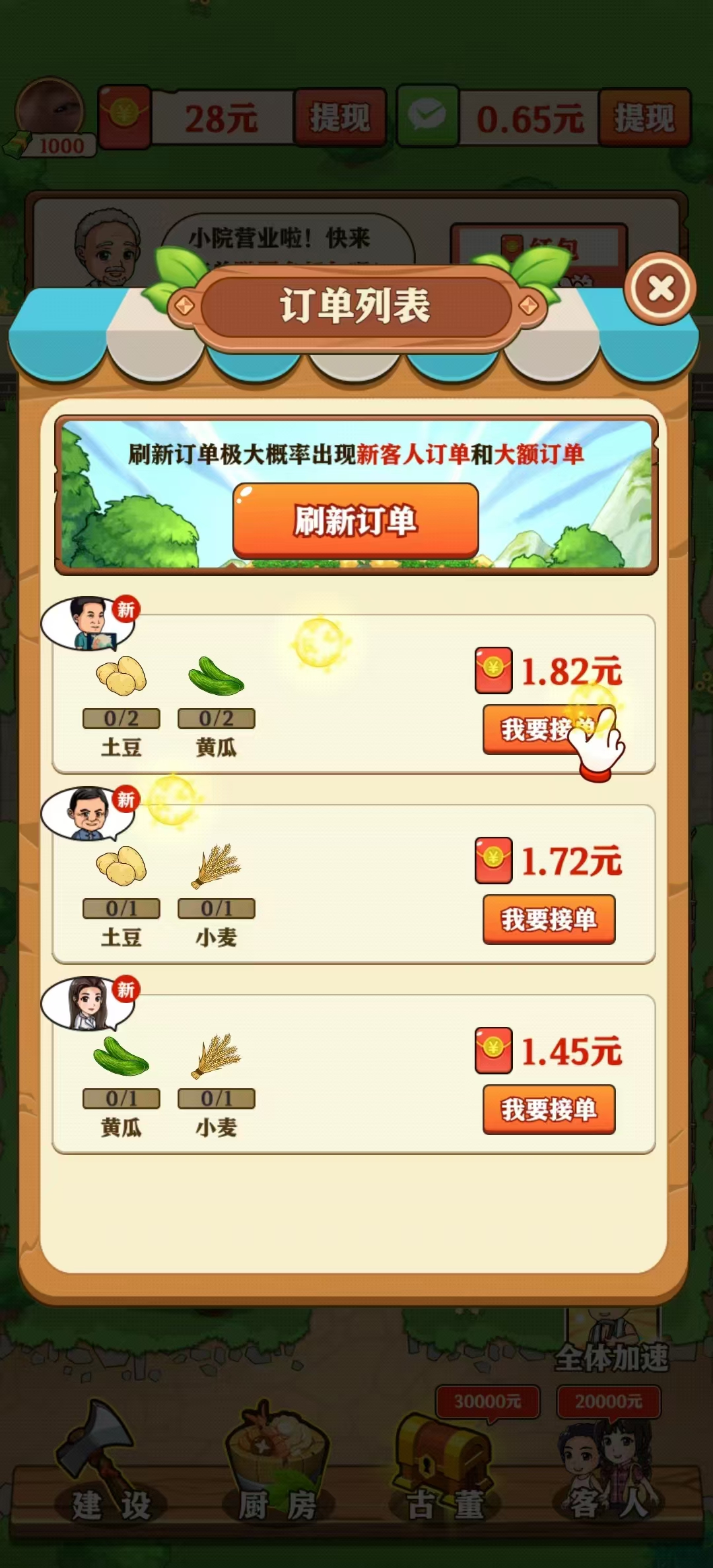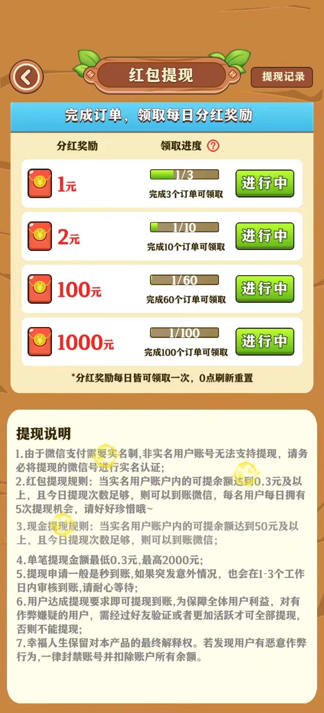 3、每当你完成一笔客人的订单同时,你也会获得一定的红包提现数额奖励,累积达到官方游戏条件以后,就会给予相应的奖励。