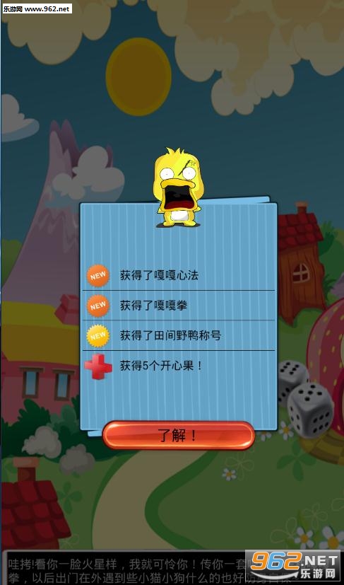 《刀疤鸭传说游戏安卓版》是一款模拟养成游戏,画风制作精致人物可爱,玩家在游戏中照顾鸭子,将它培养成江湖无敌大侠,经典的背景音乐以及搞笑的剧情和雷人的语言一定让你大呼过瘾,快来下载试试吧!