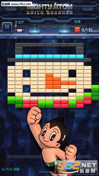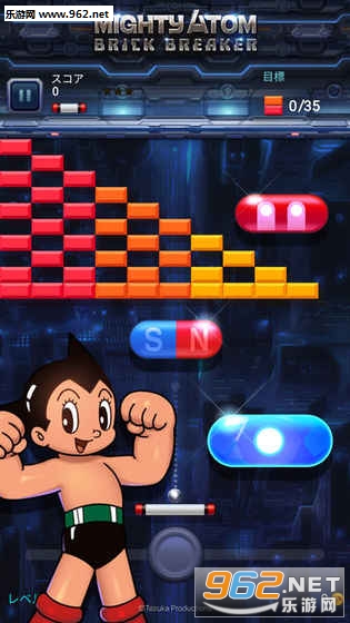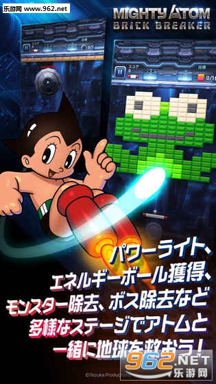 一款阿童木主题的打砖块休闲游戏,背景设定为坏人想通过砖块化地球来毁灭世界,小飞侠阿童木撞砖将利用能量球的撞击消除这些不良方块,在轻松的打砖块游戏中解救地球于危难吧。