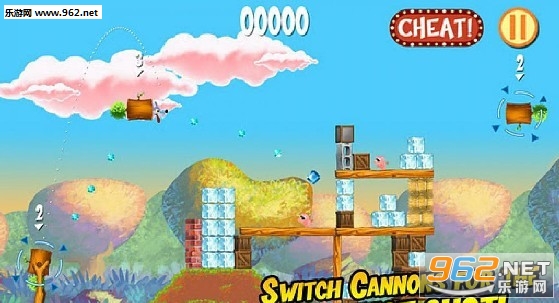 这款游戏是以“三只小猪”这个故事为基础的,大灰狼将自己装到大炮里,调整合适的角度翻越到小猪的家里。你可以使用数种不同的道具帮助大灰狼达到小猪的屋。