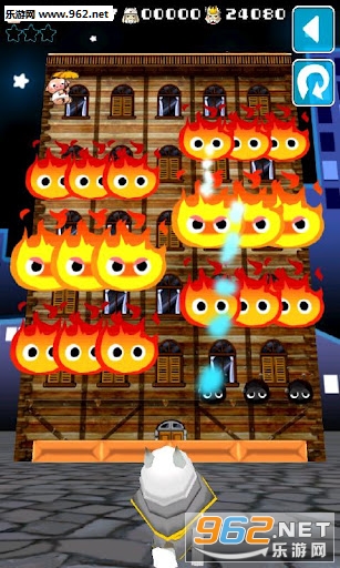游戏中你需要将扮演一名消防员将火扑灭,让小猪安全逃离火海。游戏操作非常简单,将消防管道对准着火地点即可。