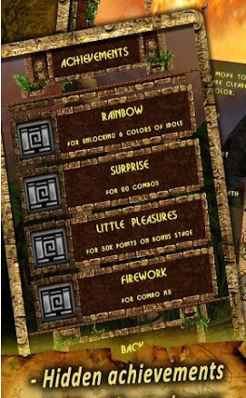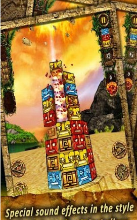 游戏的背景设在海岛丛林里的神秘祭坛,祭坛上方会有三个连成一条的偶像石块不断下落,偶像石块有不同的颜色,你可以通过旋转祭坛,来决定让偶像石块的下落位置,也可以通过点击屏幕,更换偶像石块的摆放顺序,来影响之后的消除。只要是 3 个同色偶像石块相连,无论是纵向还是横向都可以消除。