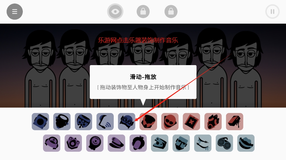 玩家通过拖拽音符或乐器装饰物到角色身上,自由组合音轨生成音乐,支持电子、摇滚、流行等多种风格,并可通过录制分享作品。