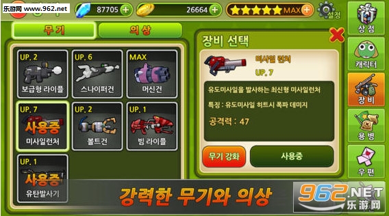这款游戏的主角相信不会陌生,这是一个非常可爱的小动漫人物。而且比较有特色的是游戏的主角可不是仅仅只有一个,五个性格迥异的小动漫人物在面对敌人的时候并进作战。游戏中多种多样的超炫武器也是一个亮点呢,选择你喜欢的装备让敌人见识下你的厉害。随着游戏关卡的解锁还有不同的好玩道具和系统奖励等着你。超炫的游戏战斗画面,颇具打击感的游戏大招,你还在等什么!