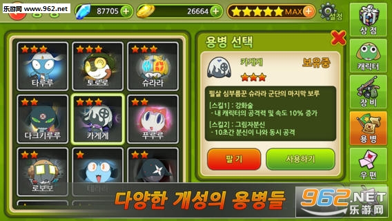 《keroro动作英雄》是一款以动漫《keroro军曹》为主题的射击手游。你将带领其他四个小伙伴与13种佣兵在各种副本中战斗。游戏中有各种非常有特色的武器装备和时装可供选择,还有超级酷炫的战斗场面等你去体验。