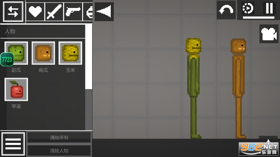 《甜瓜游乐场》是一款像素风格的自由度高的沙盒模拟手游,游戏加入了人物、载具、武器等各种各样的道具,可以自由搭配摆放这些道具来模拟各种场景,比如可以为人穿上盔甲,可以拿各种武器等。