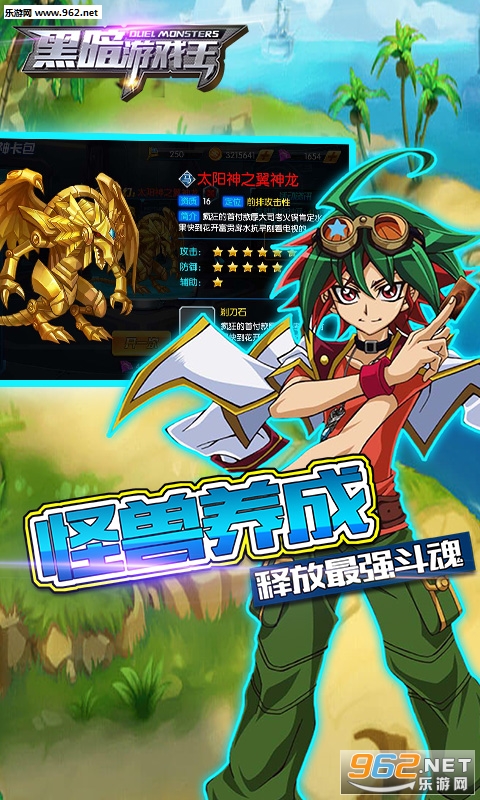 超人气动漫“游戏王”背景,原作角色、经典卡牌玩法,原汁原味为你呈现!青眼白龙、黑魔导、真红眼黑龙等怪兽等你收集,激活千年积木,去挑战!去冒险!在游戏中你能体验到策略卡牌对决的种种乐趣,丰富的竞技场模式对决能提高自己的实力,同时还可以得到丰富的奖励,你装备好了吗?游戏王的宝座正在向你呼唤!只有一个人能够获得最终的胜利。