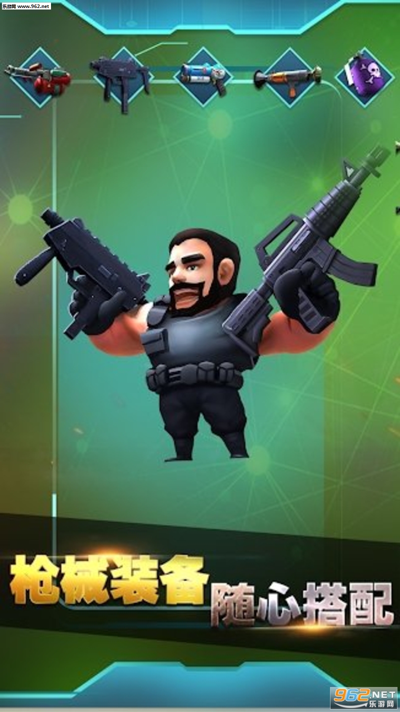 移动走位,收集枪械,这就是你要学会的全部,集齐各式各样的装备,看到人就是冲上去干!